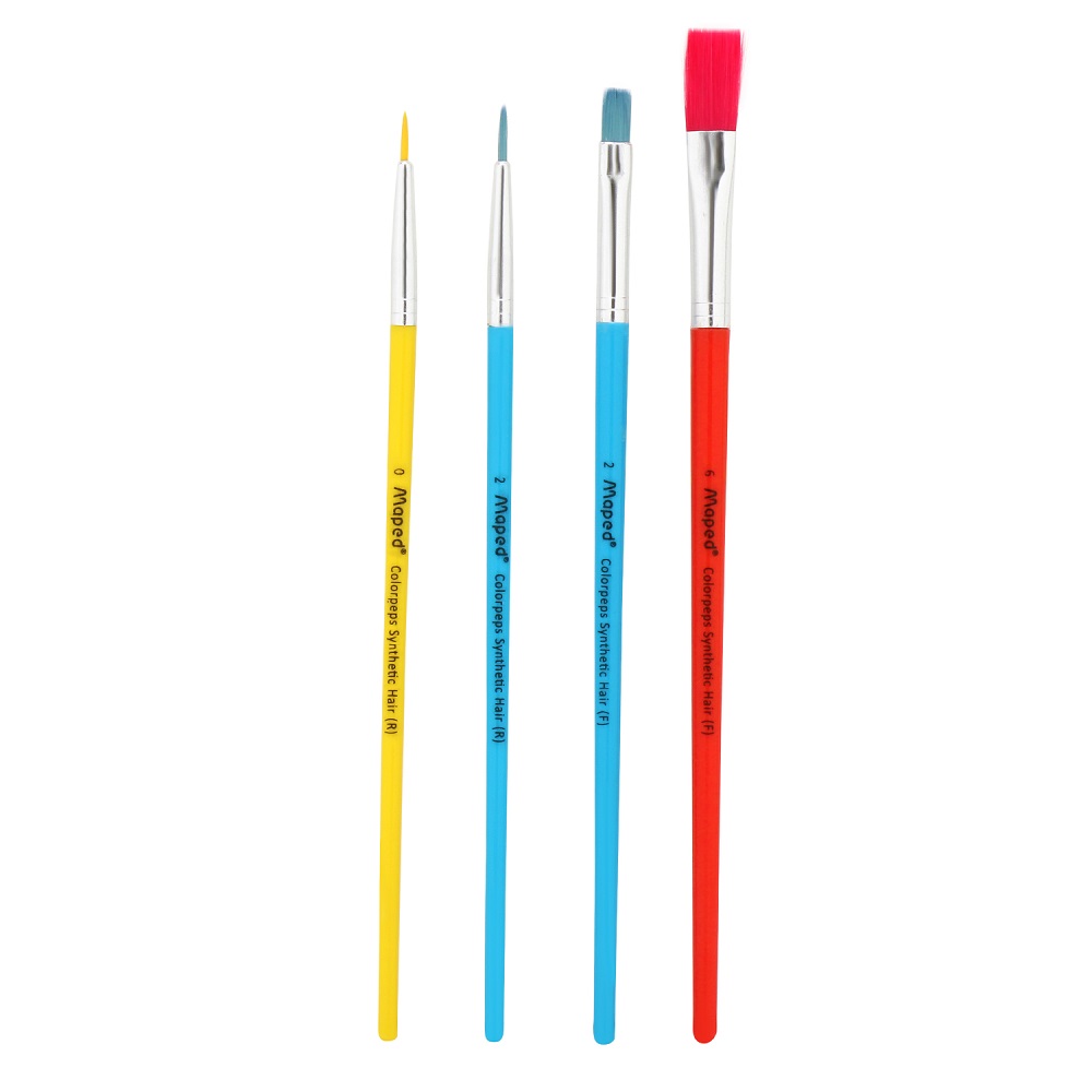 PLASTIC HANDLE SYNTHETIC MIX SET OF 4 (ROUND AND FLAT)